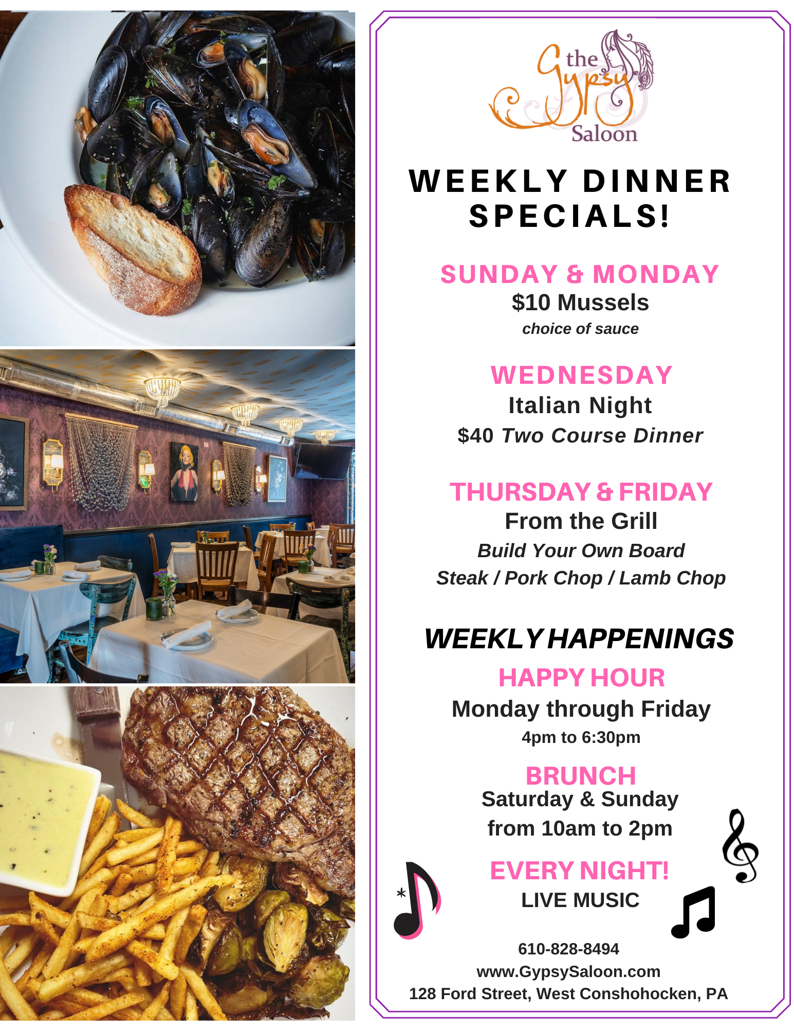 every thursday & friday night*consuming raw or undercooked meats, poultry, seafood, shellfish, or eggs may increase your risk of foodborne illness